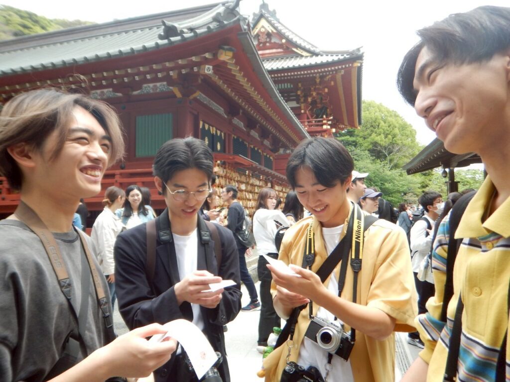 続いて鶴岡八幡宮を訪れました!他の班と遭遇して、新たなメンバーと出会い、話したりおみくじを引いたりして盛り上がりました!