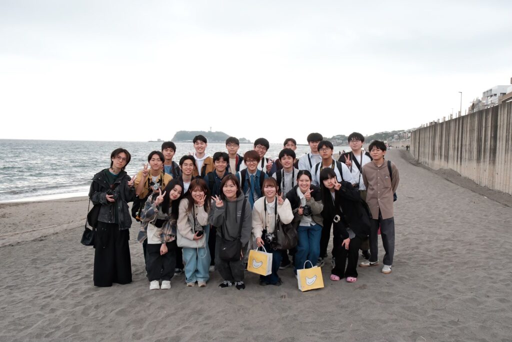 南与野駅集合と北鎌倉駅集合に分かれて、集合場所ごとにそれぞれ班を作って行動しました!先輩・後輩関係なしのシャッフル少人数班で行動開始!班ごとに鎌倉の街へ飛び出し、思う存分写真撮影をスタートしました!観光地はどこも大盛り上がり!人にも風景にも全力でシャッターを切りまくり、アルバムからあふれるほど沢山写真を撮れました!午後には班行動を終え、七里ヶ浜に集合。初めて全員が集まり、集合写真を撮影!そのあとは各自江ノ島を周り、解散となりました。