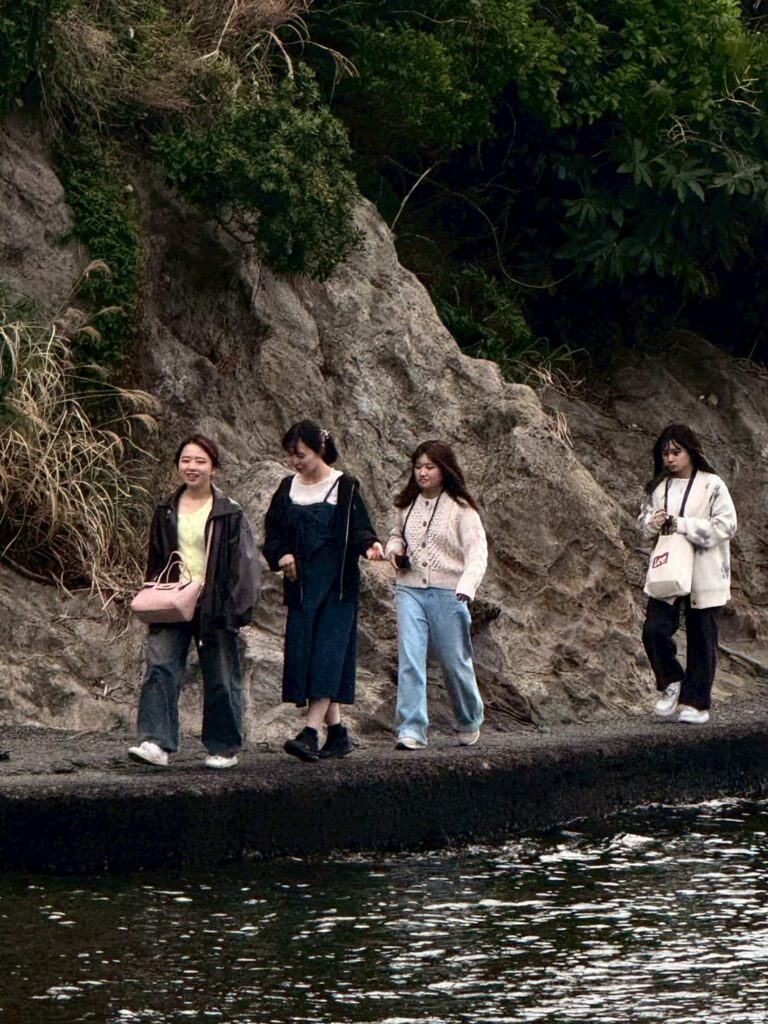 満腹になった後は、七里ヶ浜に集合!ここで初めて全員で集合し写真を撮りました!晴れずいい景色は撮れなかったものの、思い出に残る一枚になりました!