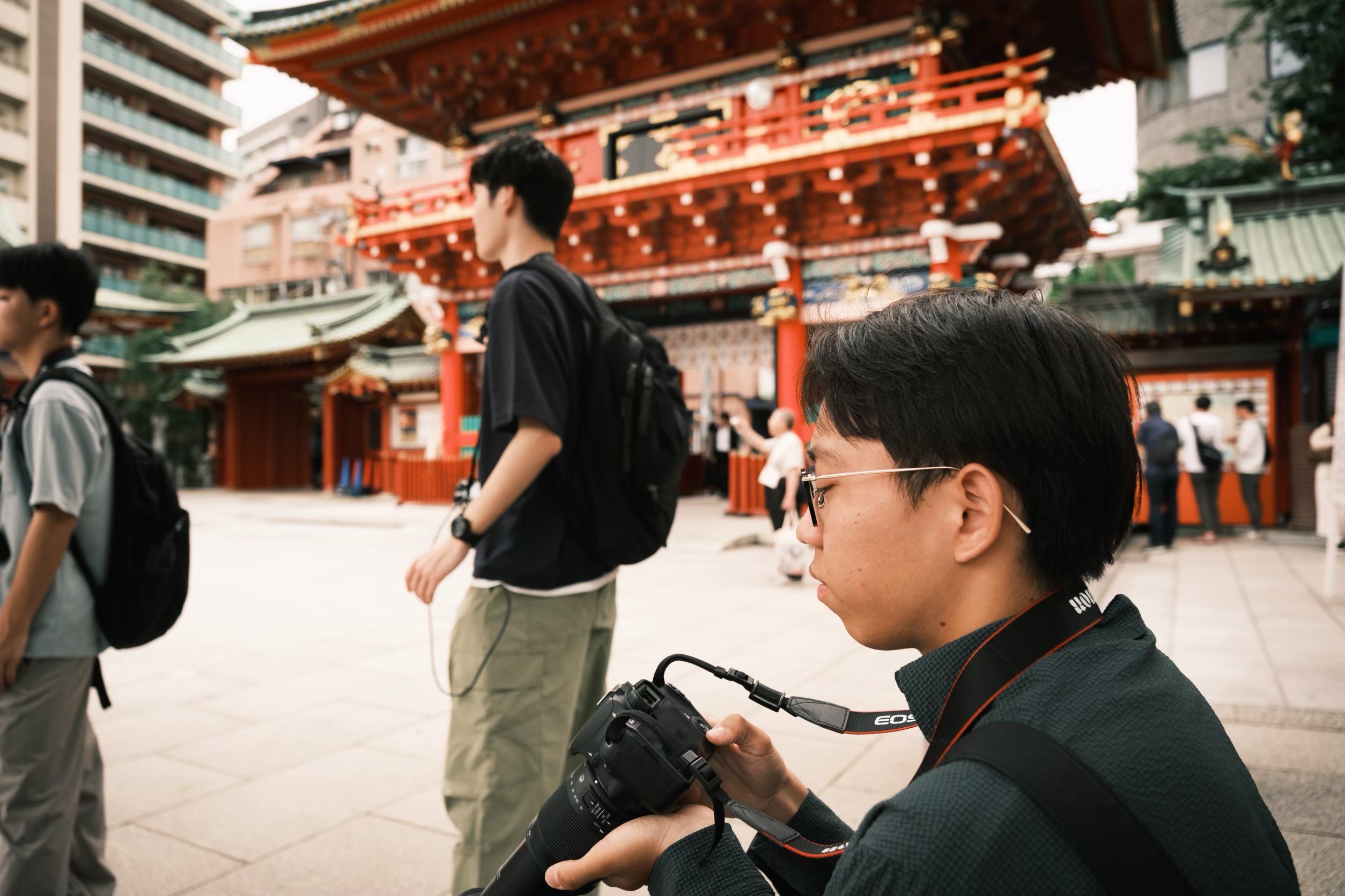 購買意欲が湧いてきたところで、浅草に突入!浅草周辺は同日に祭りが開催されていたこともあり、歩行者天国になってました!観光客がたくさんいる中で負けじと写真を撮りました。一部の班は仲見世通りで祭りの神輿の勢いに負けて動けなくなったとか。。