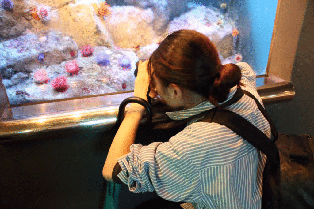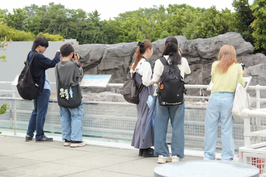 最後に水族館に行きました。葛西臨海水族館の魅力の一つとして他の水族館よりも入園料がとても安いんです!水族館は暗い場所が多いため撮影が難しかったですが、みんな全力で撮影に励んでいました。