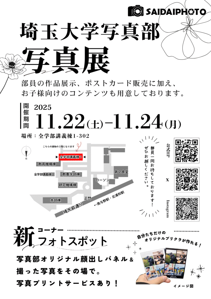 11月22日(土)~11月24日(月)の3日間、埼玉大学で開催される第76回むつめ祭にて、埼玉大学写真部では写真展を開催しております!詳細は以下の通りです。